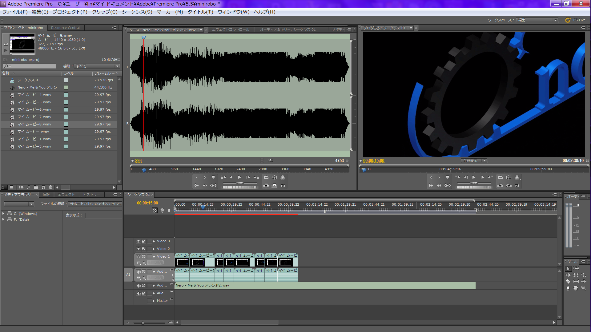 ある意味気楽になったので、告知通り部内ロボコン、通称ミニロボコンのPVを作り始めました。 彼女(3DCGアニメーション専攻)の協力でロゴを3Dアニメーションにしてもらってます。ソフトをあげたので(^w^) 近々作業風景やらなんやらを撮影しにいくので、覚悟しとけよ後輩ども☆ Premier Pro CS5.5 での作業風景でも。 |